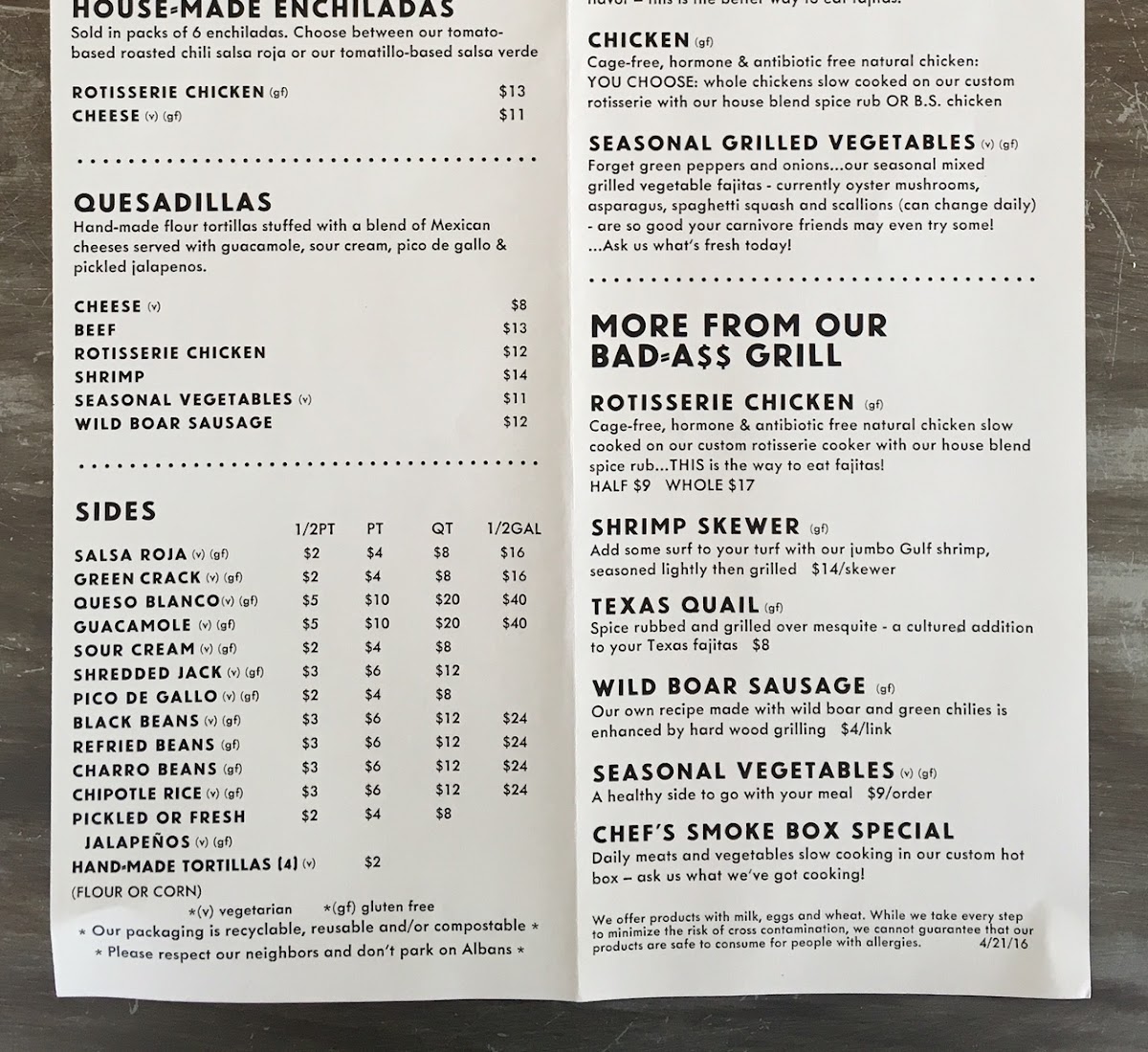 ...when you can't decide this one has it all! served with all the goodies in the fajita meals along with- BEEF SIRLOIN, CHICKEN, BOAR SAUSAGE, GRILLED SHRIMP AND SEASONAL VEGETABLES. -No Substitutions allowed on this item-